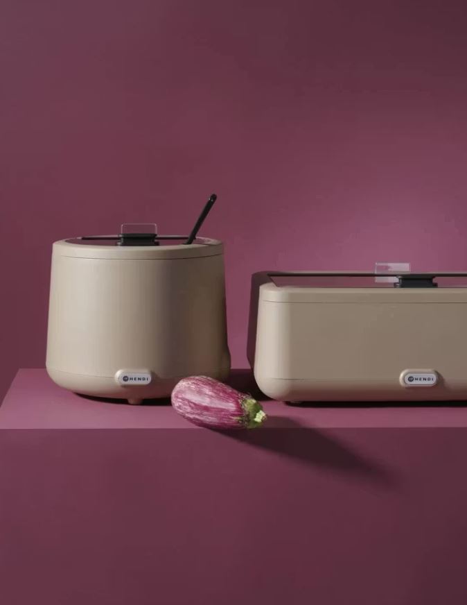Med sin stilrena beige färg är soppvärmare Uniq Hendi inte bara praktisk utan också ett snyggt inslag på buffébordet. Den är lätt att transportera och därför utmärkt för catering, samtidigt som den ger pålitlig varmhållning för professionella restaurangkök.