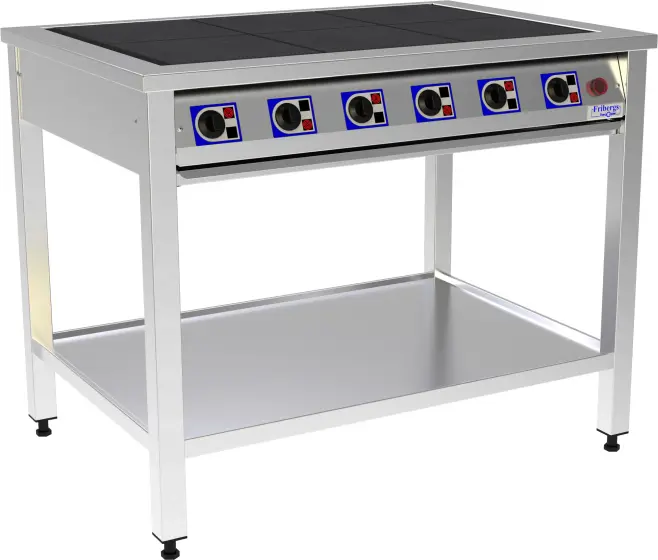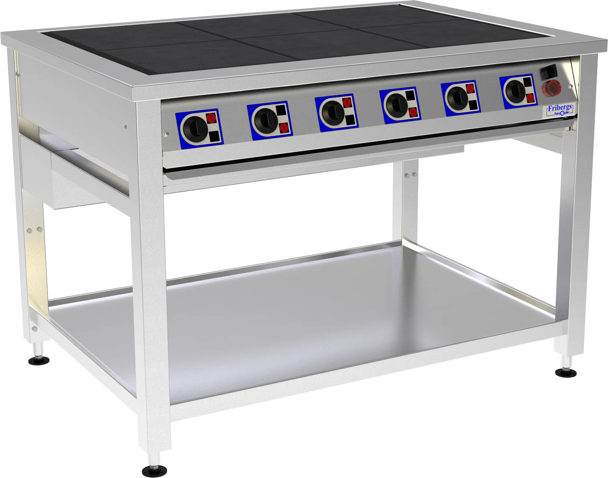 FSH6090EL = 1110x770x800/1000 (elektrisk höj/sänkbar), 6 gjutjärnsplattor á 2,5kW