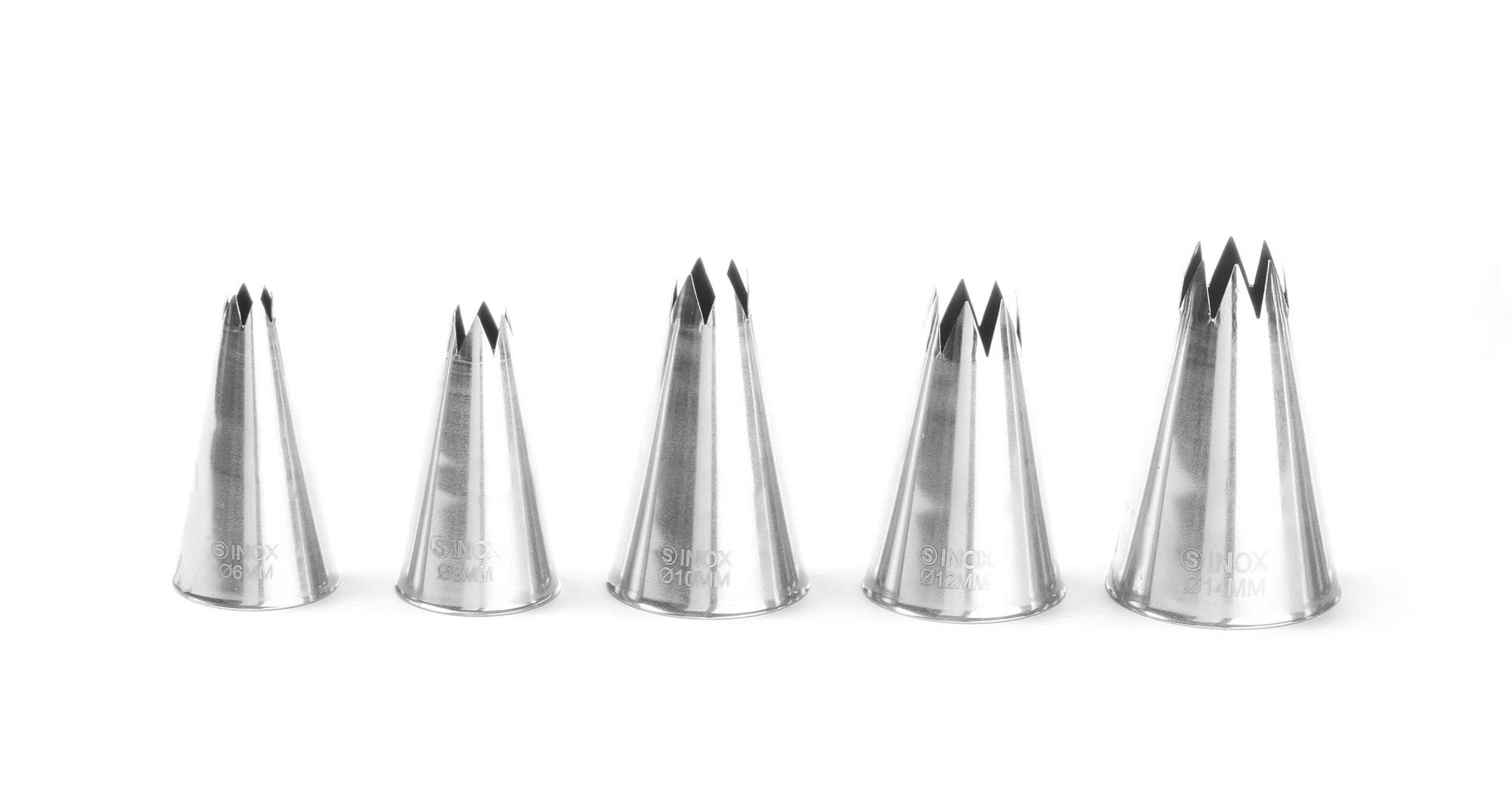 Spritsset med 5 olika stjärnformade i rostfritt stål, ø 6-8-10-12-14 mm.