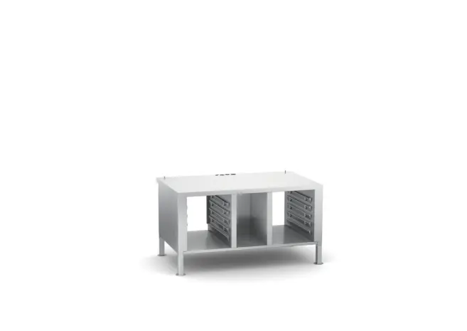 Stängda sidoväggar och tak, öppen baksida. 4 fötter i rostfritt stål förberedda för fästen (ej justerbara).