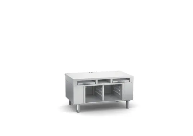 2 skjutbara hyllor, 6 par 1/1 GN (325×530mm) skenor.