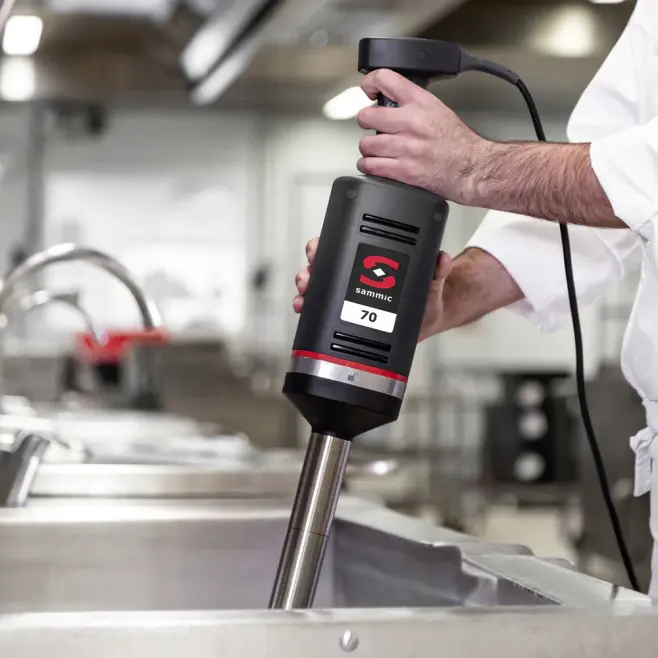 Professionell stavmixer designad för att utföra olika förberedelser utan behov av tilläggsverktyg.