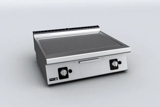Kommersiell Stekbord gas från spanska Fagor i serie Kore 700. Snabb och effektiv Stekbord med en mycket bra och enhetlig temperaturfördelning anpassad för restaurang och storkök.
