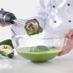 Professional version. Housing made of fiber reinforced nylon. Stainless steel shaft and blade. Whisk attachment included (290 mm.) Easy accessory changing clutch. Easy to clean. Ergonomic handle. Shaft length: 250 mm Suitable for dishes up to 20 liters. Speed control knob. Speed: 2500 – 15000 RPM. Weight 1,9 kg