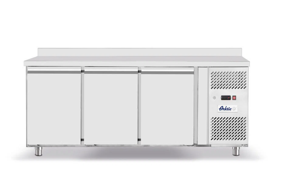 Inner and outer housing are made of high-quality stainless steel, except the outer rear cover which is made of galvanized steel. Self-closing doors fitted with comfortable handles. Work surface fitted with a 40 mm high ridge at the back. Forced air cooling with auto-defrost, compressor placed next to the chamber. 50 mm thick polyurethane foam insulation. With adjustable shelving, fits containers up to GN 1/1. Digital display and electronic thermostat. With 4 adjustable stainless-steel feet. Climate class: SN-T.