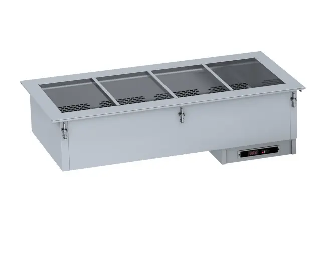 Bain marie-värmesystem med dolda silikonresistorer som är fästa på botten av brunnen.
