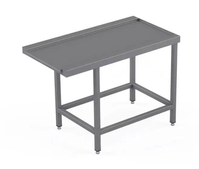Utmatningsbänkarna och inmatningsbänkarna är robusta, stabila och svetsade. Allt tillverkas med förstärkningar i rostfritt på undersidan och levereras utan organisk material.