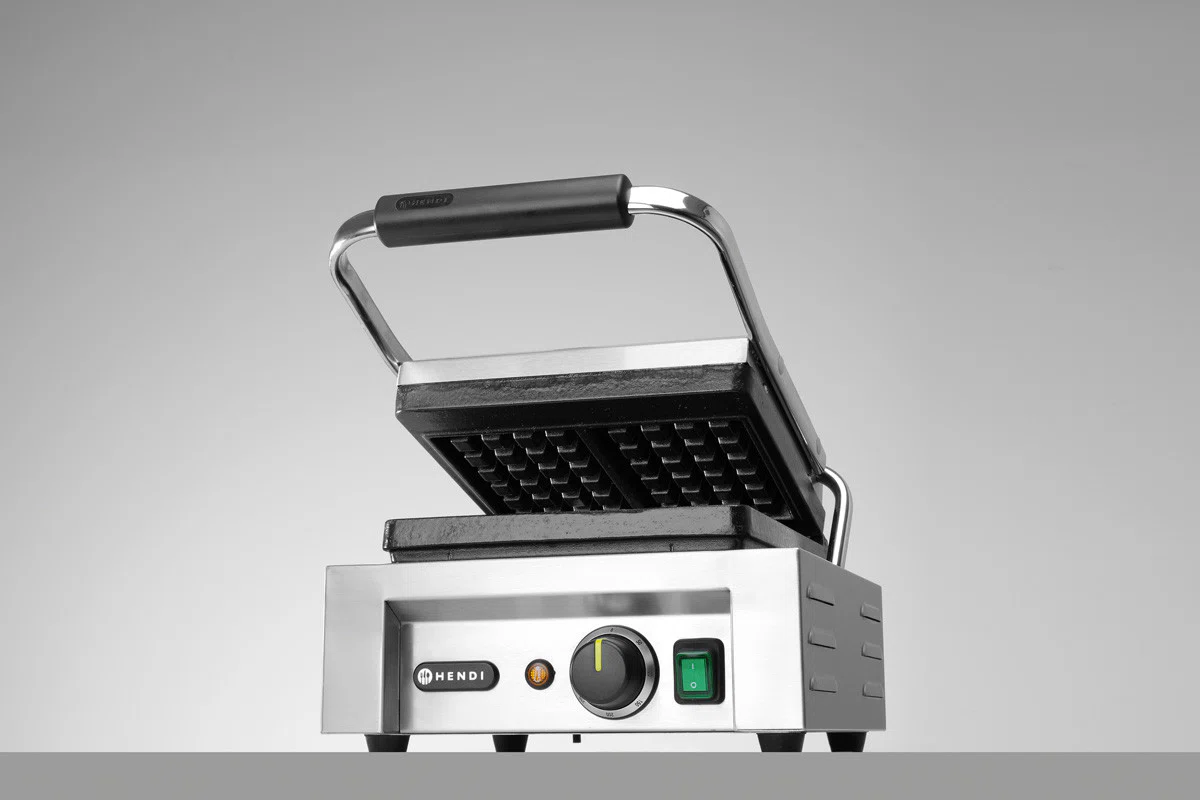 Klassiska belgiska Liége våfflor med detta våffeljärn från Hendi. Gjutjärnsplattor med non-stick belagd yta. Termostat och isolerat handtag. Inkluderar en våffeltång. 2 st våfflor. Skillnaden på Belgiska våfflor och Belgiska Liége våfflor är att dessa görs på jäst och pärlsocker. Pärlsockret karamelliseras då våfflorna gräddas och resultatet blir en krispig yta och mjukt sött inre.