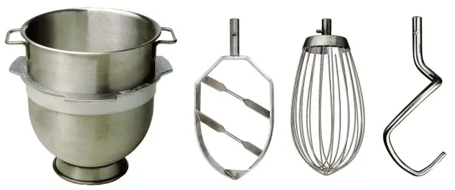 Varimixer A-utrustning (1 set med skål i rostfritt stål med skåldetektering, blandningsspade i aluminium, visp med trådar i rostfritt stål och krok i rostfritt stål)