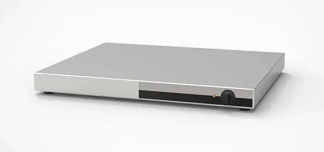 Värmehällen är i rostfritt material och har en tjock värmefördelningsplatta i aluminium som ger en jämn temperatur över hela ytan.