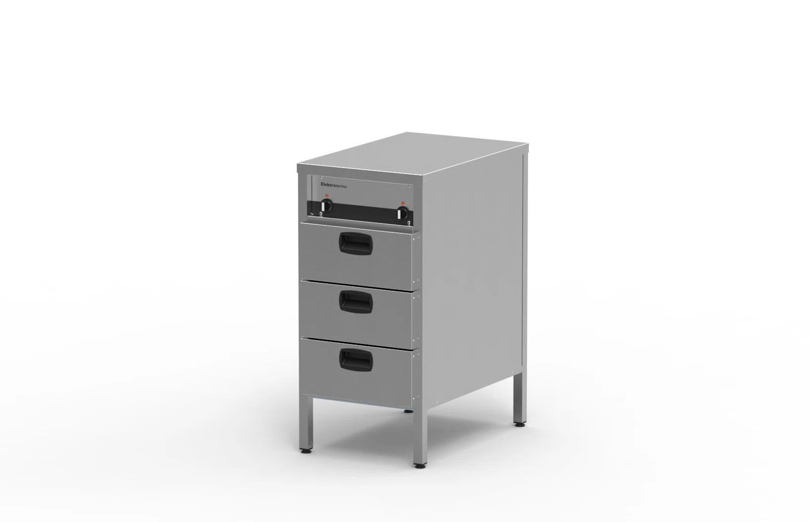 Hurtsen är tillverkad i rostfritt material. I den stabila underhyllan är fyra fyrkantsrör insvetsade. I dessa rör är sidoplåtar, fronter och innerskåp fästade. Ryggplåten är skruvad för enkel installation och service. Värmeelementen är monterade i bottenplåten. Hurts med varmtopp har en fem mm tjock värmefördelningsplatta under den rostfria topplåten i vilken elementen är fästade. Detta ger en mycket jämn temperatur över hela ytan. För injustera av hurtsen fi nns fyra ställbara fötter. Kapslingsklass IP43, skyddsklass I.