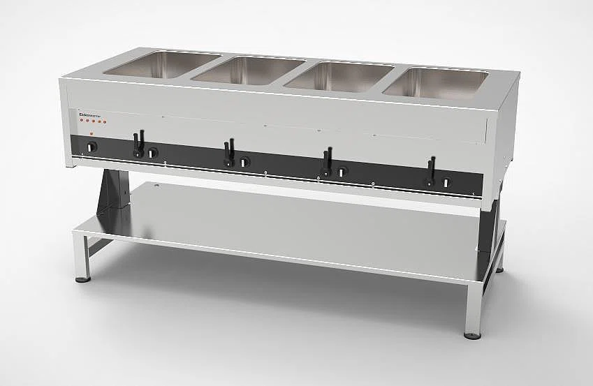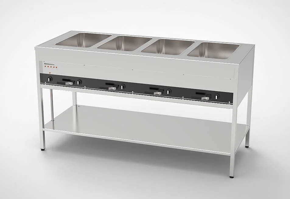Värmeri av hög kvalité tillverkat av Elektrotermo. Ett värmeri med utrymme för 4 GN kantiner i storlek 1/1. Utmärkt köksutrustning för din restaurang eller storkök med effektiv och snabb prestanda.
