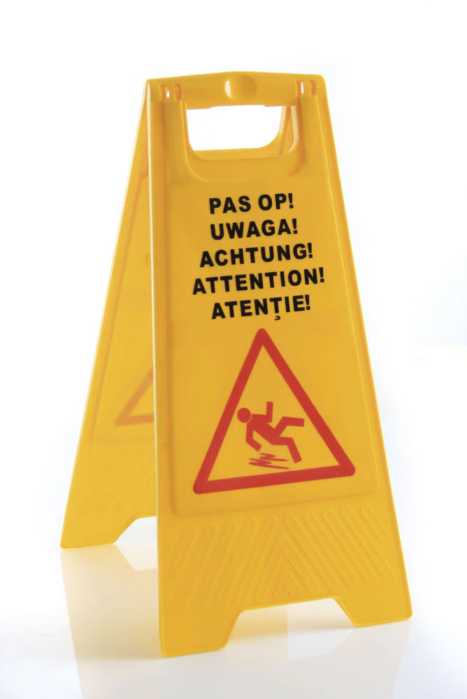 Vått golv-skylt, Varning på 5 språk – PP