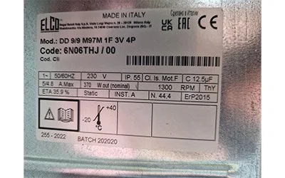 Ventilationsmotor. Model: DD 9/9 370W -IP55. Mått: 346x380x392mm. Vi har 2 st på lager.