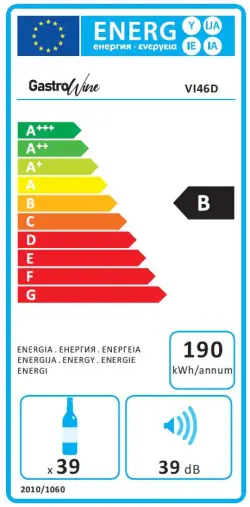 Inbyggd / fristående installation, nettokapacitet: 119L (39 flaskor);