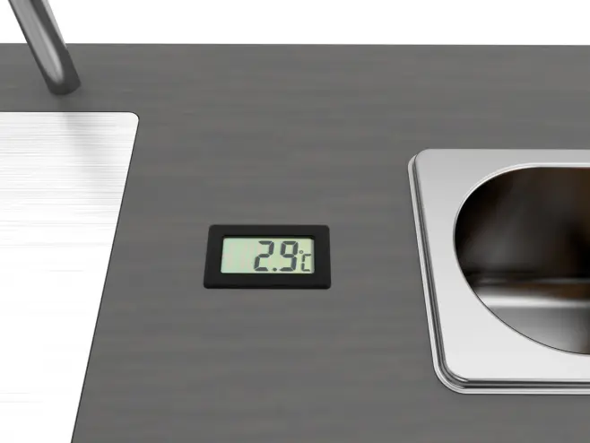 En användbar digital termometer gör det möjligt att snabbt kontrollera temperaturen i kylarnas botten.