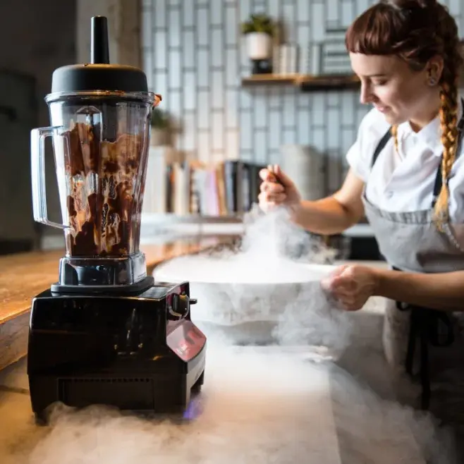 Det ventilerande locket i kannan släpper ut ånga och möjliggör att mixa varma vätskor samt att tillsätta ingredienser under tiden du mixar för att justera konsistensen. Det är även genom lockpluggens öppning som tampern/plastpinnen används. Tampern har en ”plastkrage” som gör att när den används genom lockets öppning kommer den aldrig i kontakt med knivbladen och kan användas när maskinen går på full speed.