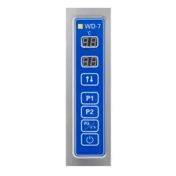 Wexiödisks huvdiskmaskin WD-7, en robust och enkel grundkonstruktion med det bästa av komponenter och material, garanterar en mångårig och säker drift. Detta, i kombination med svensk ingenjörskonst, för att optimera funktion och handhavande, har skapat en unik produkt även för de mest krävande kunderna. Vill du ha den mest kundvänliga maskinen väljer du WD-7 med ”Auto-Start”. Enklare kan det inte bli. Skjut in korgen. Automatiken stänger huven och startar maskinen. Huven öppnas automatiskt när diskprogrammet är avslutat. Diskgodset blir glänsande rent, det börjar genast torka, och maskinen är klar för nästa korg. Med ett enkelt handgrepp kan du ställa om för ”grovdisk” vilket ökar spoltrycket. Detta, i kombination med tre programval, löser kökets varierande krav. Den fria inmatningshöjden på 500 mm och den invändiga bredden 610 mm möjliggör diskning av inte bara tallrikar, glas och bestick, utan även bakplåtar, brödbackar, skrymmande kärl, GN-kantiner, etc. Huvens geniala funktion under öppningsfasen leder ångan uppåt bakom maskinen och inte i ansiktet på användaren. För att förbättra arbetsmiljön i diskrummet finns som tillbehör en speciell imhuv, med eller utan kondenseringsanläggning. Diskprocessen avslutas med en effektiv slutsköljning. För att uppnå ett optimalt diskresultat och god hygien, sker en rotationstömning av diskarmarna i början av sköljfasen. Detta förhindrar dropp av kvarvarande diskvatten från övre diskarmen på rent gods. Ett automatiskt rengöringsprogram underlättar den invändiga rengöringen av maskinen. Ett kraftfullt elektroniskt styrsystem övervakar HACCP-funktionerna och säkerställer att förutbestämda parametrar uppnås. Som alternativ till ”Auto-start”- utförandet kan maskinen erhållas med huvautomatik, aktiverad med en tryckknapp på manöverpanelen, eller med en manuellt manövrerad huv. Den väl genomtänkta placeringen av komponenter, som under många år kännetecknat Wexiödisks produkter, lever vidare. De flesta komponenter är lätt åtkomliga och service kan utföras från maskinens framsida. Elektroniken medger även avläsning av historik samt serviceinformation vid underhållsarbete. För att öka maskinens användningsområde är den dessutom försedd med ett unik spolsystem med varierbart spoltryck som gör det möjligt att enkelt välja mellan grovdisk och findisk. Detta gör att maskinen kan användas i de flesta installationer där blandningen av diskgods är stor och kravet på kapaciteten är hög.