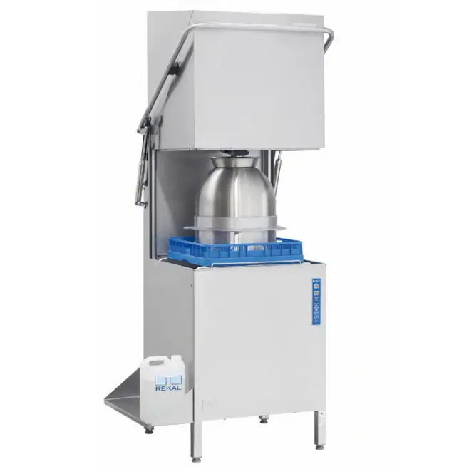 Med ett enkelt handgrepp kan du ställa om för ”grovdisk” vilket ökar spoltrycket. Detta, i kombination med tre programval, löser kökets varierande krav. Den fria inmatningshöjden på 500 mm och den invändiga bredden 610 mm möjliggör diskning av inte bara tallrikar, glas och bestick, utan även bakplåtar, brödbackar, skrymmande kärl, GN-kantiner, etc.