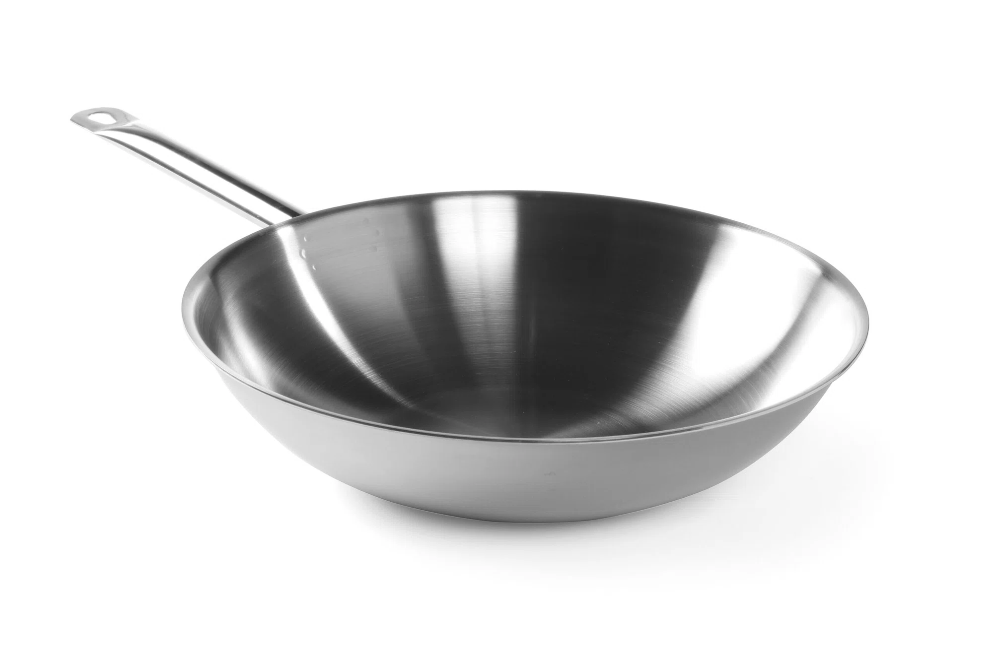 Wokpanna med sandwichbotten med aluminium, två lager rostfritt stål. Passar alla värmekällor även induktion, tål diskmaskin.